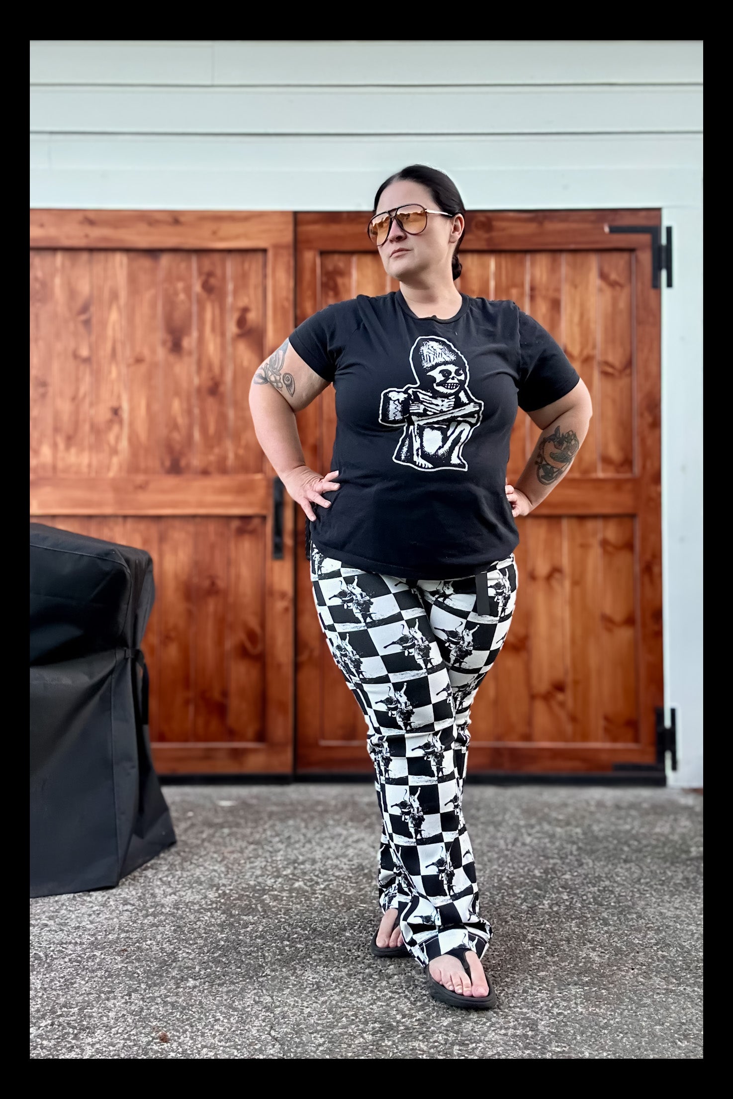 Black White Checkered Kicking Horse Jeans